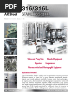 Allegheny Ludlum Type 316LN (UNS S31653) is a lowcarbon, nitrogen-enhanced version of Type 316 molybdenum-bearing austenitic stainless steel. It is also known as DIN/EN designation No. 1.4406. The Type 316 alloys are more resistant to general corrosion and pitting/crevice corrosion than the conventional chromium-nickel austenitic stainless steels such as Type 304. They also offer higher creep, stress-rupture and tensile strength at elevated temperature. Type 316 stainless steel can be susceptible to sensitization the formation of grain boundary chromium carbides at temperatures between approximately 900 and 1500 F (425 to 815 C) which can result in rapid corrosion. Reduced carbon Type 316L is resistant to sensitization; however, extended exposures in this temperature range will eventually result in sensitization of even the low carbon grade. The nitrogen in Type 316LN adds additional resistance to sensitization in some circumstances. The nitrogen content of Type 316LN stainless steel also provides some solid solution hardening, raising its minimum specified yield strength compared to Type 316L stainless steel. Like Types 316 and 316L, the Type 316LN alloy also offers excellent resistance to general corrosion and pitting/crevice corrosion.