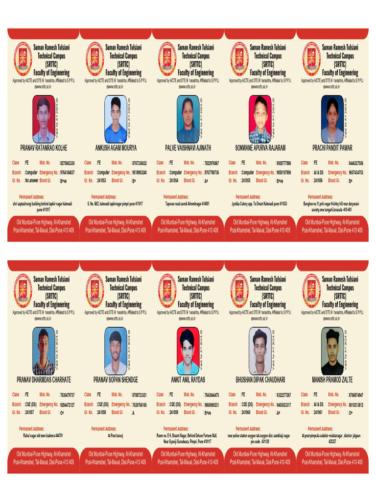 ND42 D3 Vasantrao Nike college ShimpiTakli Tal-Niphad Dist-Nashik Warcha Maliwada, Junnar. Taluka Junnar Dist. Pune Om Sai complex Bodkenager Junner Pune near kunal hotel sai pritam nagari , r. no 9 - B- Wing , rahatani