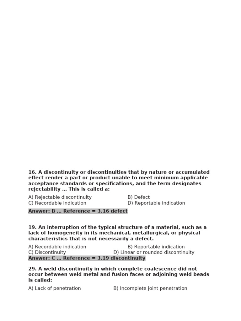 Answer: A … Reference = 3.30 Incomplete joint penetration