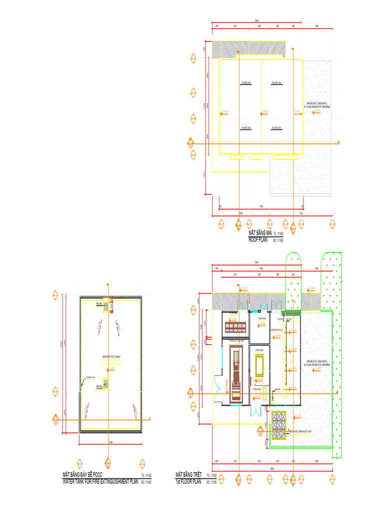 MẶT BẰNG ĐÁY BỂ PCCC TL: 1/100 MẶT BẰNG TRỆT TL: 1/100