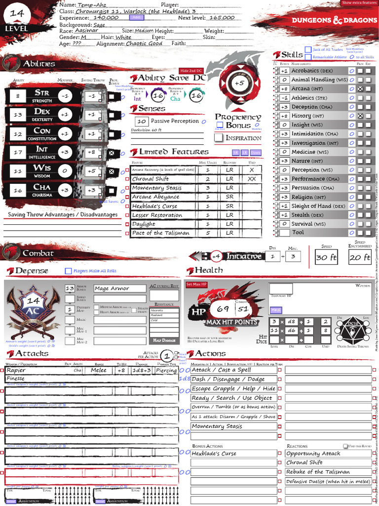 Above weapon's weight (won't print): 0 lb BONUS ACTIONS REACTIONS USED THIS ROUND