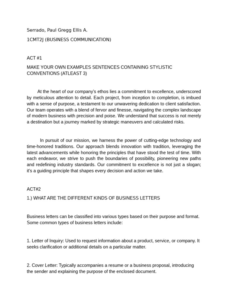 1.) WHAT ARE THE DIFFERENT KINDS OF BUSINESS LETTERS