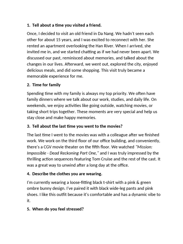 Part 2: Take One Minute to Prepare a Talk on the Following Subject