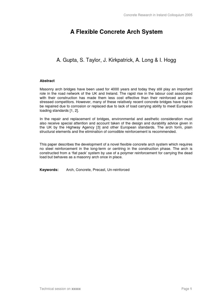 A Gupta, Structural Engineer, Macrete Ireland Limited, Northern Ireland, UK Dr. J Kirkpatrick, Retired Principal Engineer, DRD Road Services, Northern Ireland, UK Dr. Su Taylor, , Lecturer in Structural Engineering, School of Civil Engineering, Queens University Belfast Iain Hogg Bsc (Hons) Director, Macrete Ireland Limited, Northern Ireland, UK Professor A.E. Long, Professor in the School of Civil Engineering, Queens University Belfast