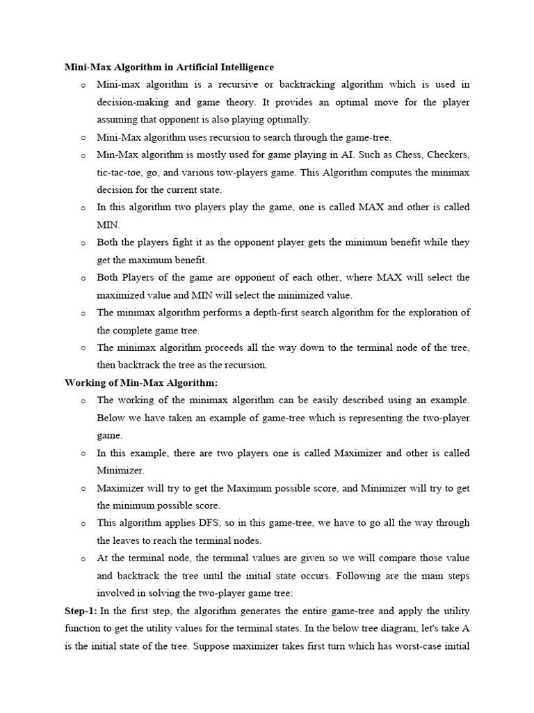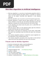 o Mini-max algorithm is a recursive or backtracking algorithm which is used in