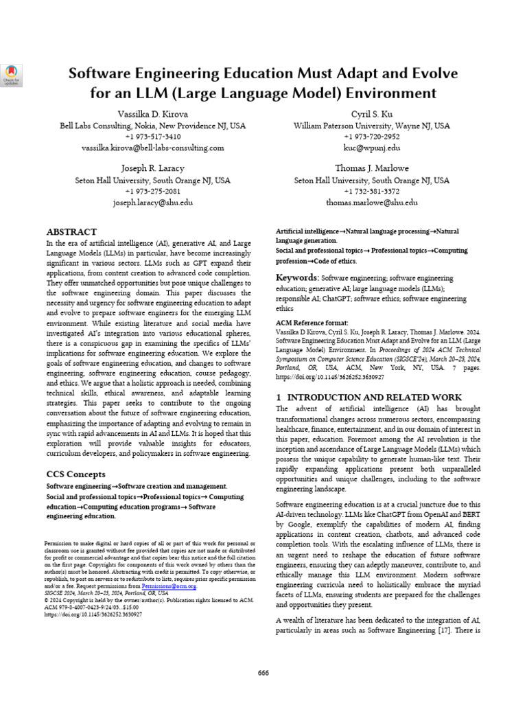 Software Engineering Education Must Adapt and Evolve SIGCSE 2024, March 20–23, 2024, Portland, OR, USA