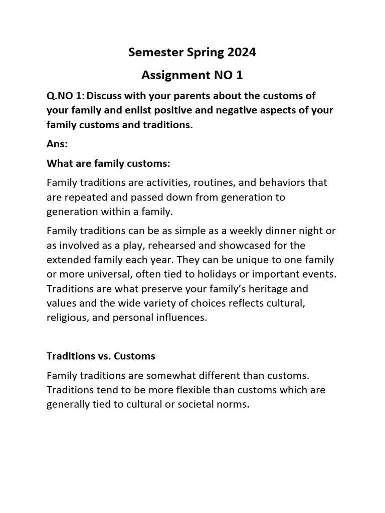 Q.NO 1: Discuss with your parents about the customs of