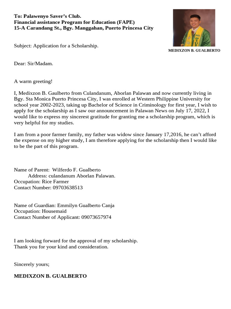 apply for the scholarship as I saw our announcement in Palawan News on July 17, 2022, I
