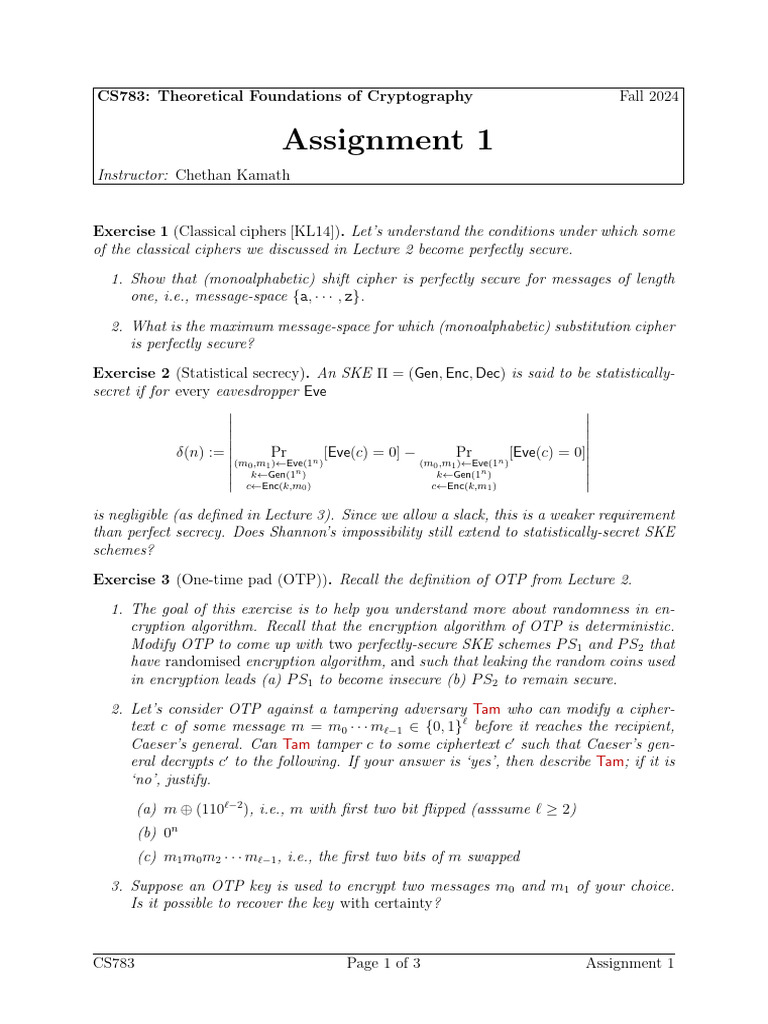 CS783: Theoretical Foundations of Cryptography Fall 2024