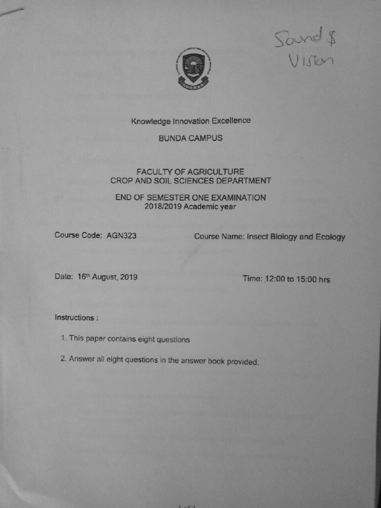 Course code: AGN 323 Course name: Insect Biology and Ecology