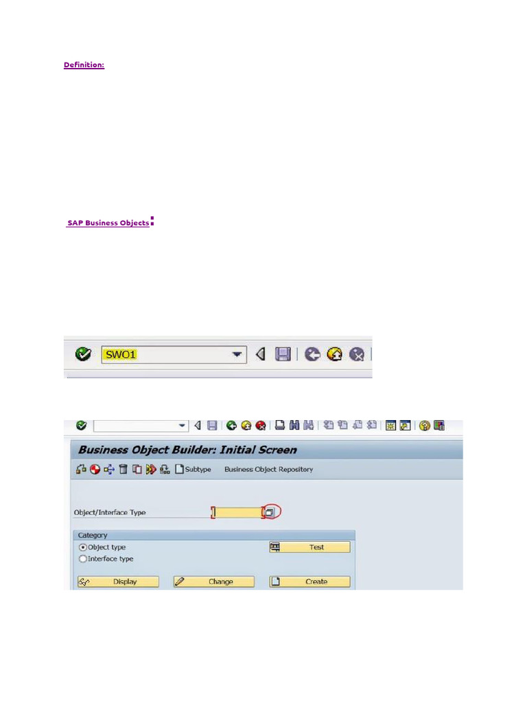 SAP Business Objects can be created with Tcode- SWO1 called as Business Object Repository. This BO