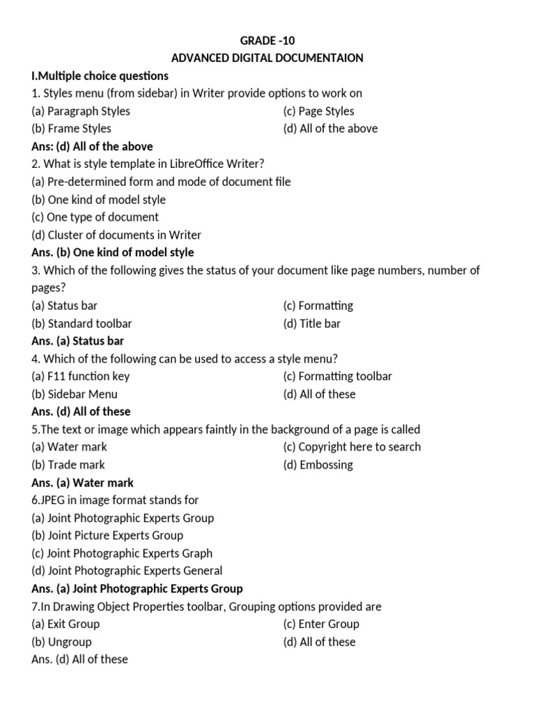 Ans. Different categories of style in Open /LibreOffice writer document are: