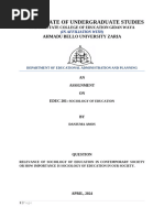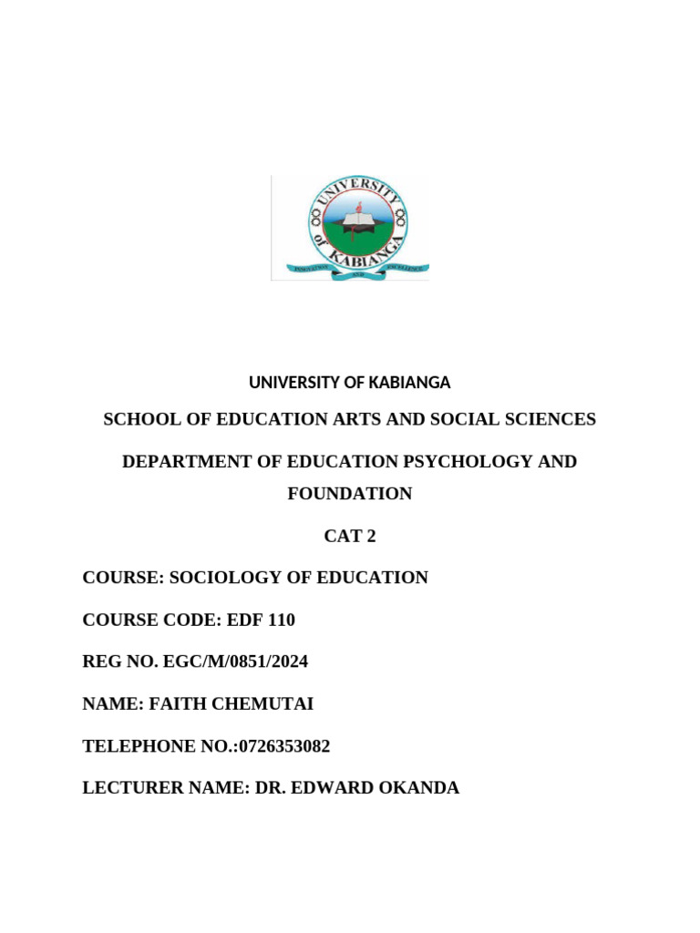 COURSE: SOCIOLOGY OF EDUCATION