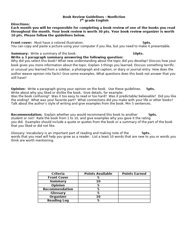 Book Review Guidelines - Nonfiction