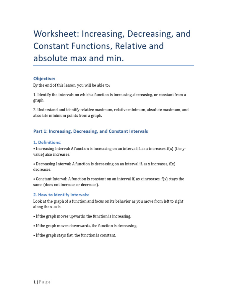 Worksheet: Increasing, Decreasing, and