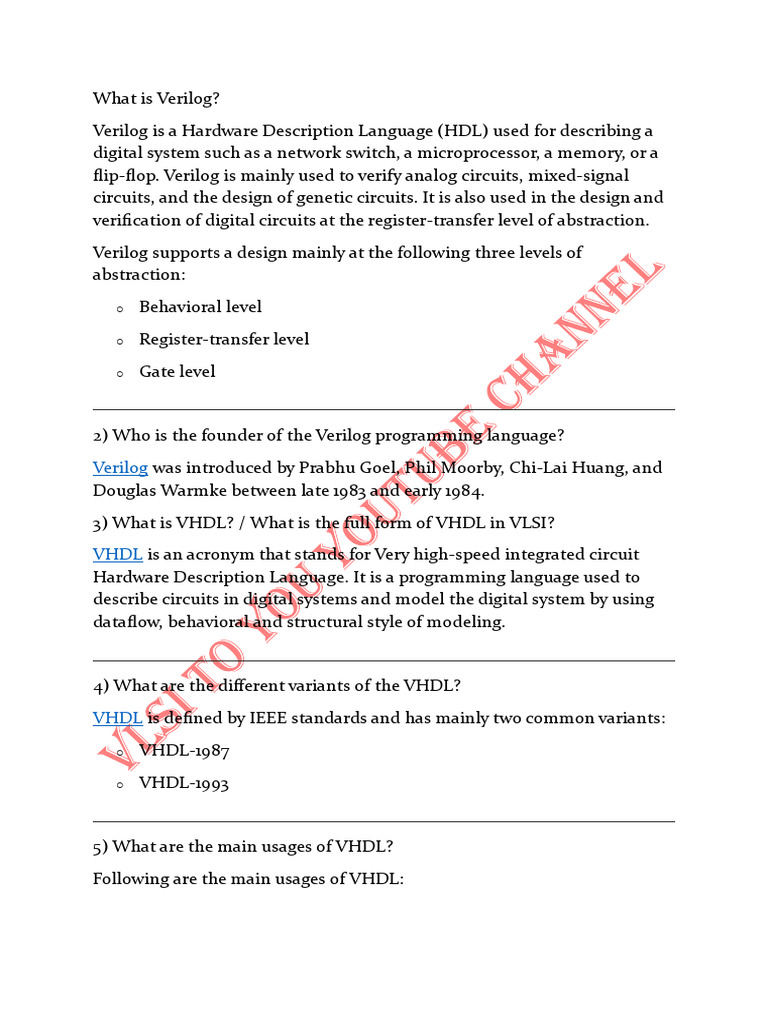 (HDL) used to describe digital system hardware such as microprocessors