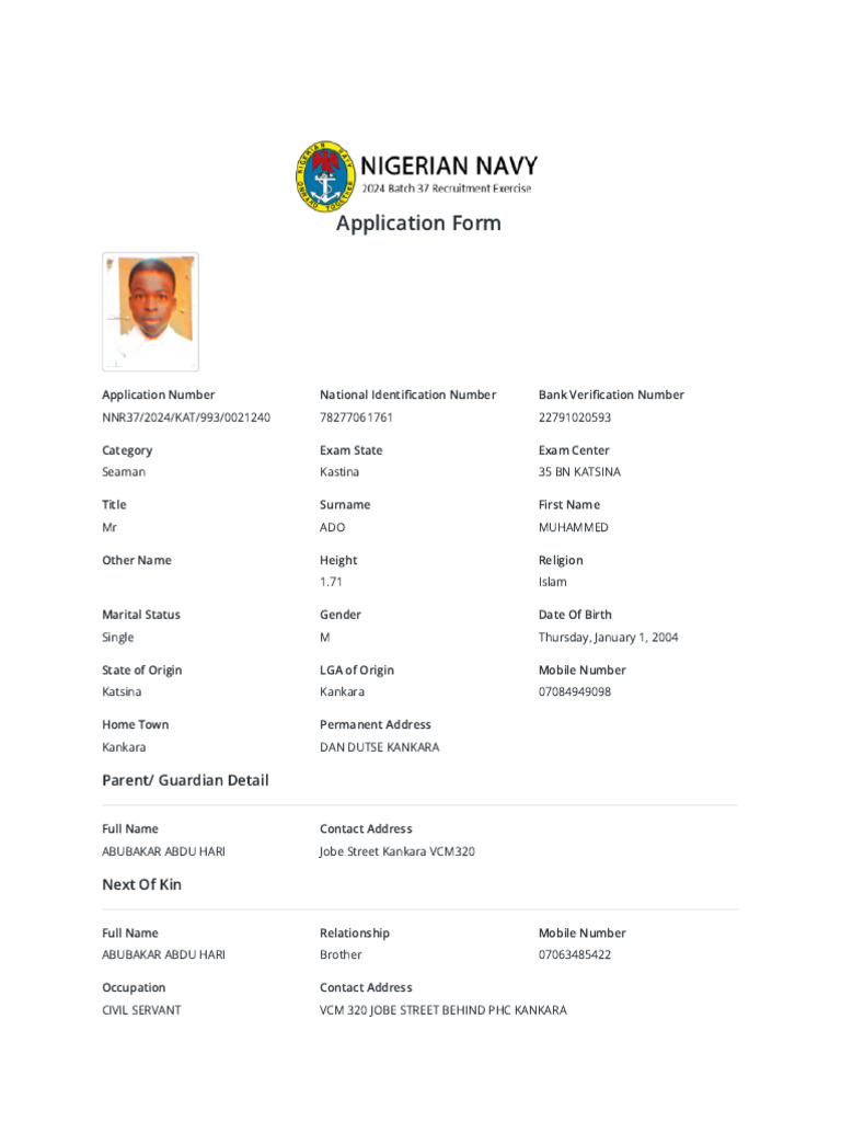 Applicant's Full Name: ADO MUHAMMED