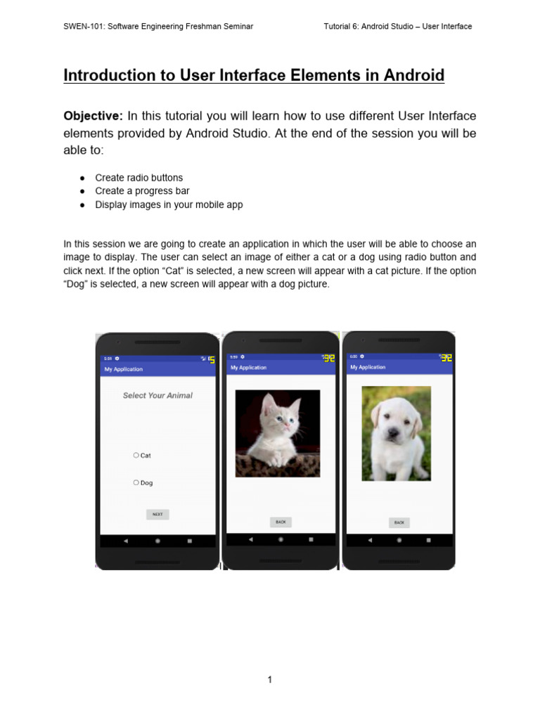 SWEN-101: Software Engineering Freshman Seminar Tutorial 6: Android Studio – User Interface