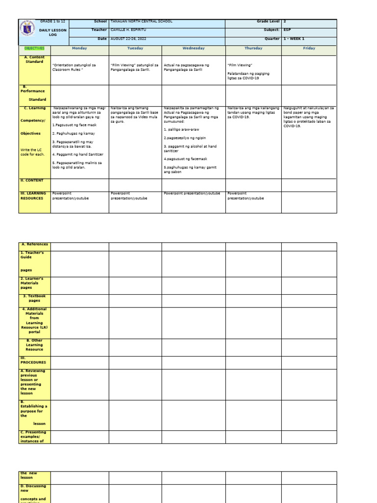 DAILY LESSON Teacher CAMILLE H. ESPIRITU Subject: ESP