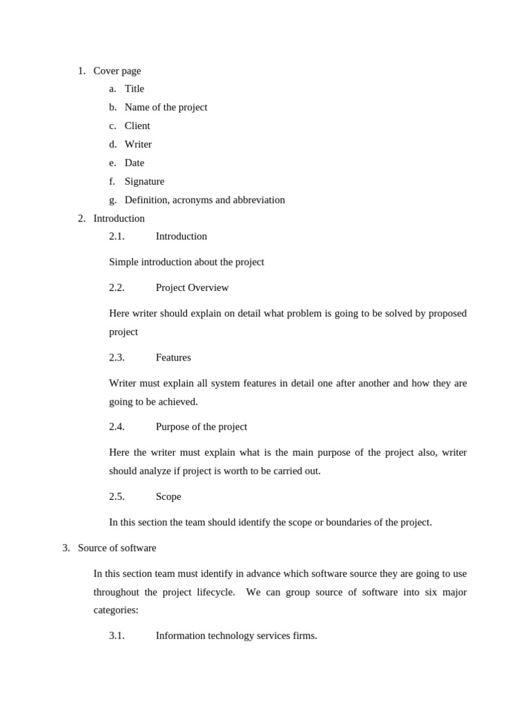 In this section team must identify in advance which software source they are going to use
