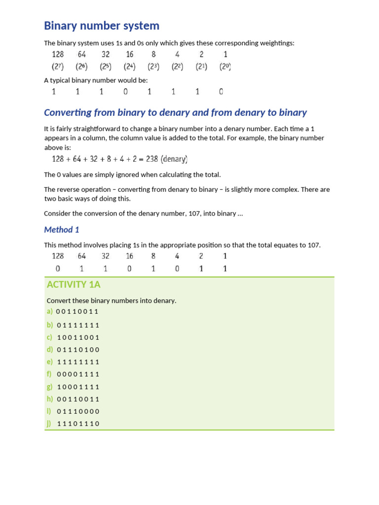 The reverse operation – converting from denary to binary – is slightly more complex. There are