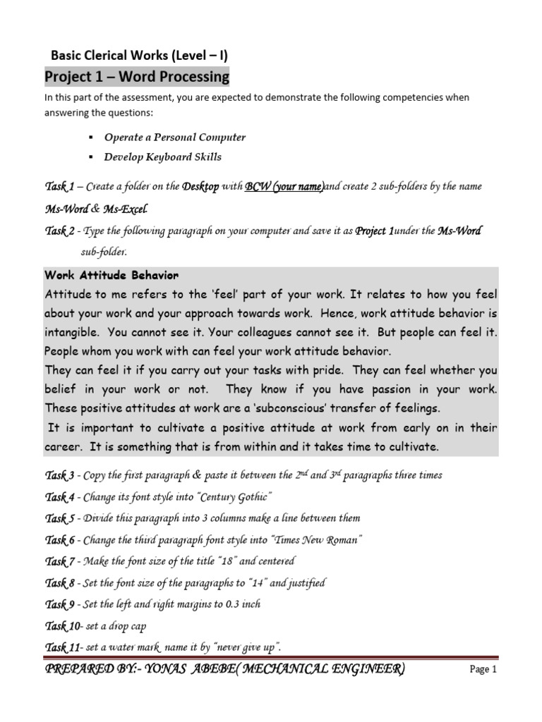 Task 2 - Type the following paragraph on your computer and save it as Project 1under the Ms-Word