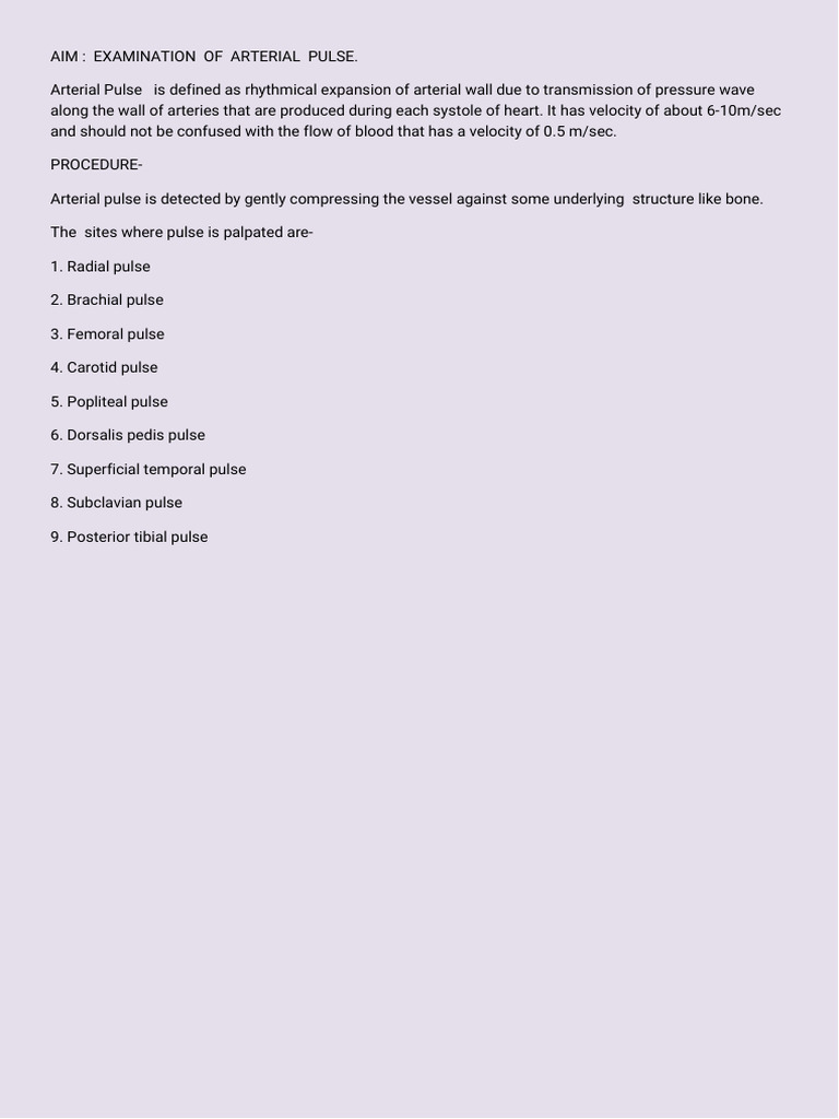 Arterial Pulse Examination Guide