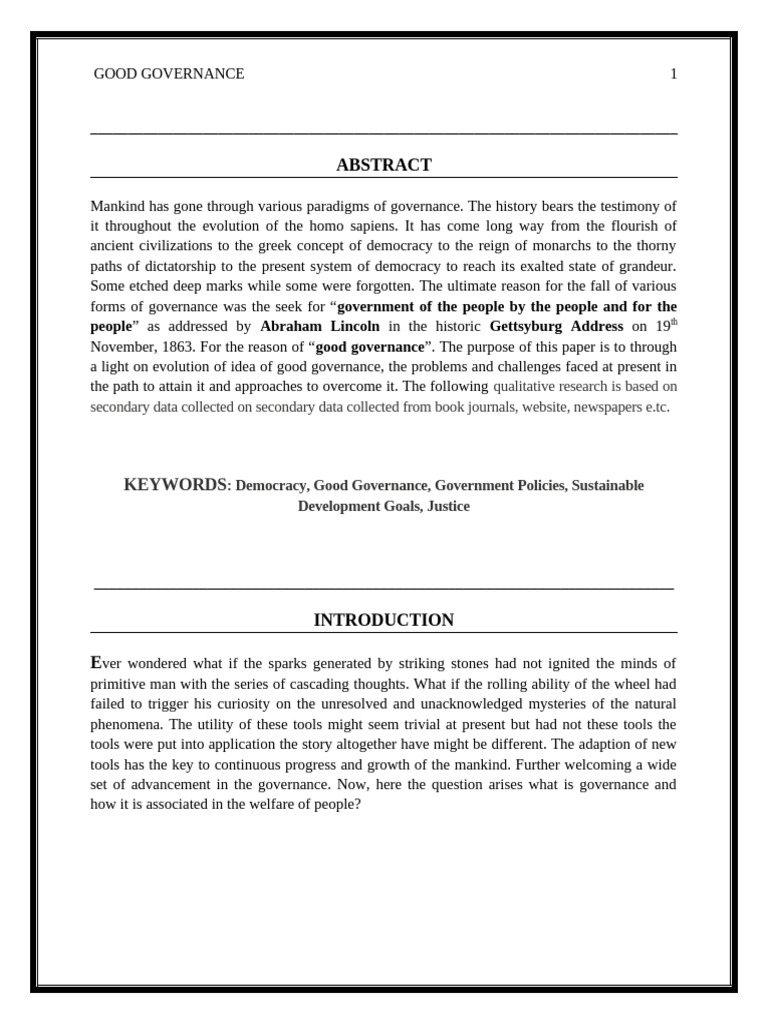 KEYWORDS: Democracy, Good Governance, Government Policies, Sustainable