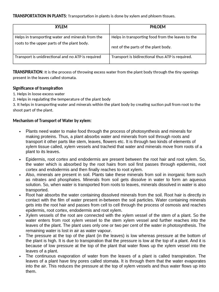 Mechanism of Transport of Water by xylem: