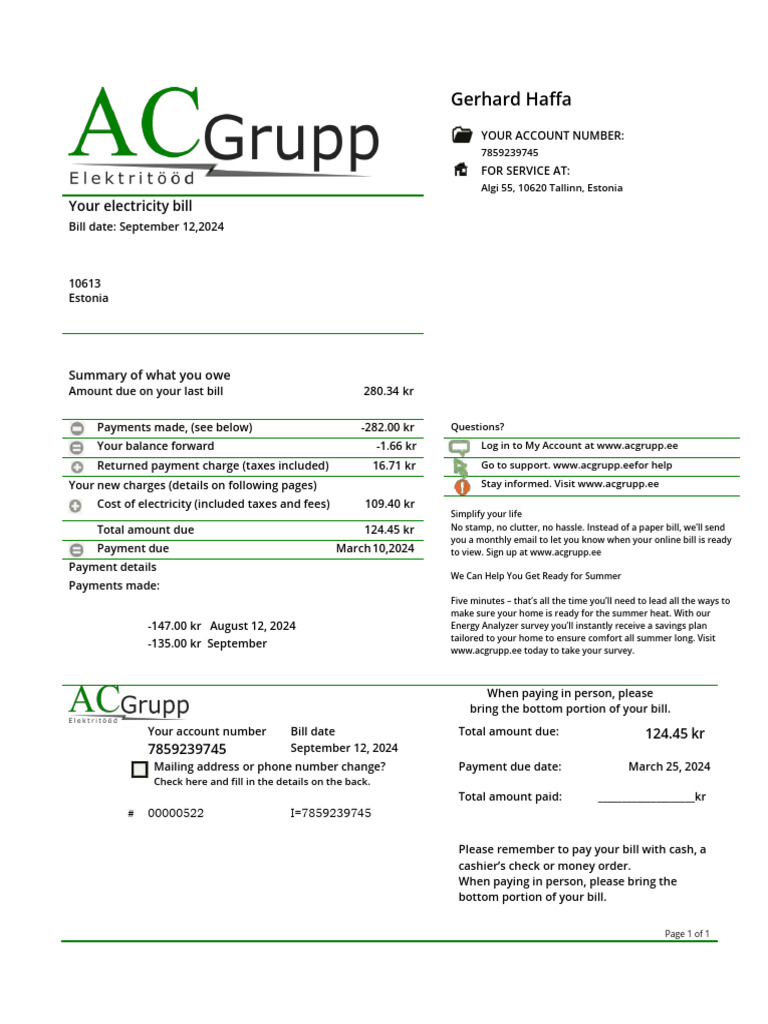 Total amount due 124.45 kr No stamp, no clutter, no hassle. Instead of a paper bill, we’ll send