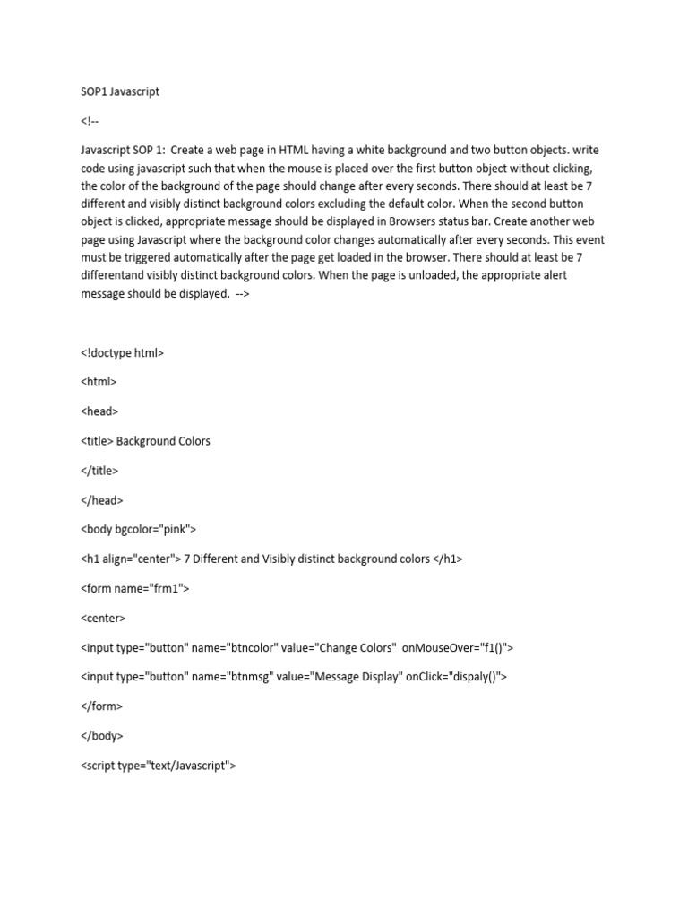 Javascript SOP 1: Create a web page in HTML having a white background and two button objects. write