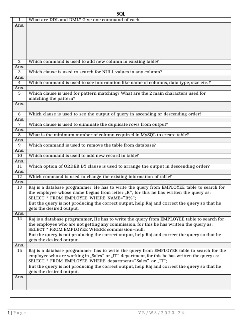 31 Write SQL queries for (i) to (iv) and find outputs for SQL queries (v) to (viii) which are based on tables