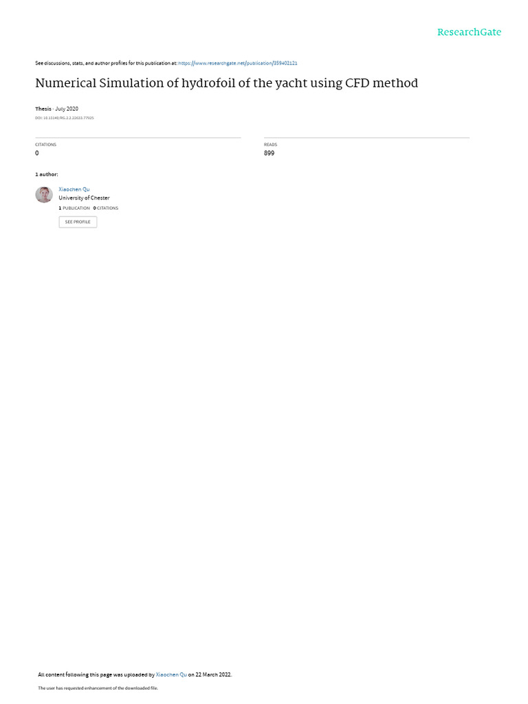 MSc research project Numerical Simulation of hydrofoil of the yacht using CFD method