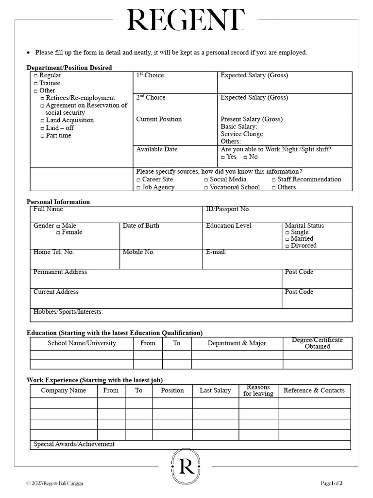 • Please fill up the form in detail and neatly, it will be kept as a personal record if you are employed.