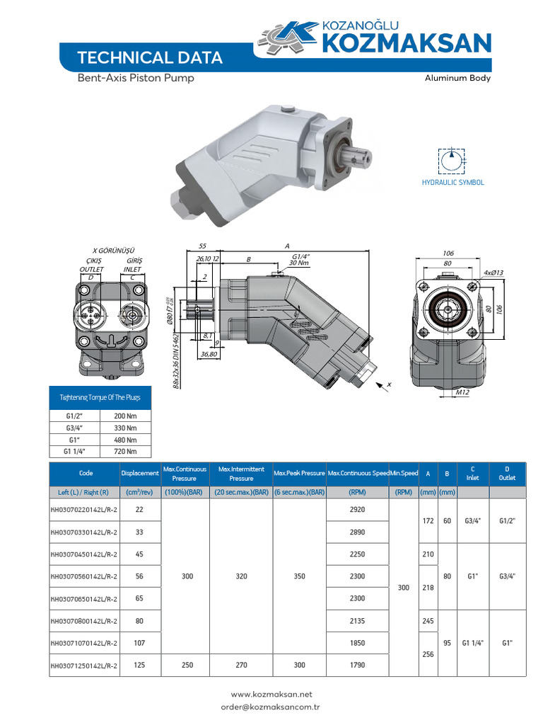 Left (L) / Right (R) (cm³/rev) (100%)(BAR) (20 sec.max.)(BAR) (6 sec.max.)(BAR) (RPM) (RPM) (mm) (mm)