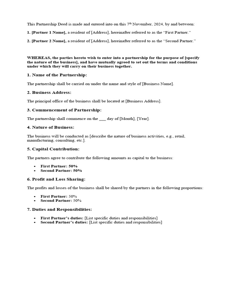 This Partnership Deed is made and entered into on this 7th November, 2024, by and between: