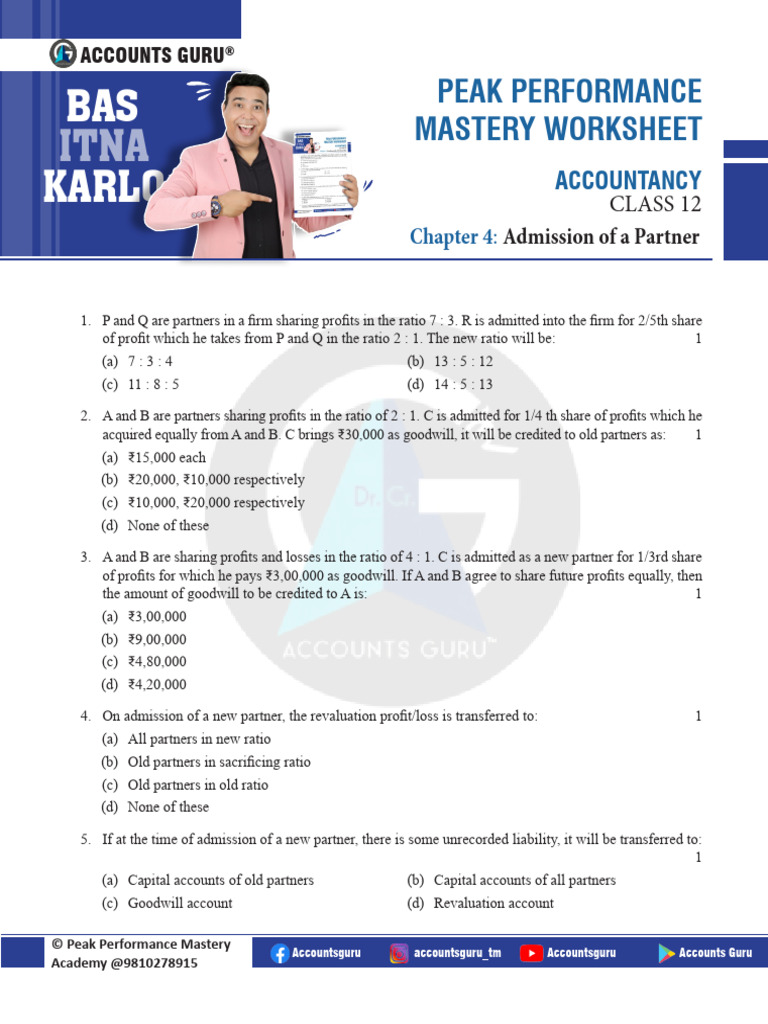 1. P and Q are partners in a firm sharing profits in the ratio 7 : 3. R is admitted into the firm for 2/5th share