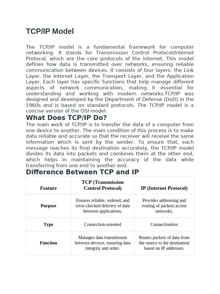 TCP/IP Model, the TCP/IP Model divides the data into packets at the