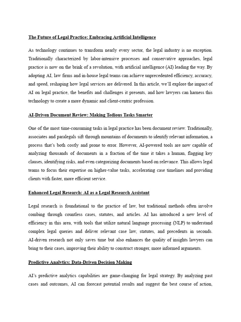 The Future of Legal Practice: Embracing Artificial Intelligence