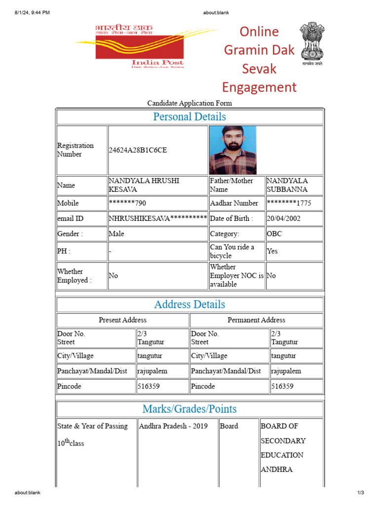 on the basis of which I am applying for the posts of GDSBPM/ABPM/DakSevak are