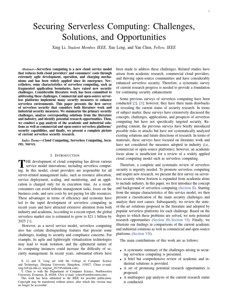 of current serverless security research. existing solutions and future directions of research. In terms of