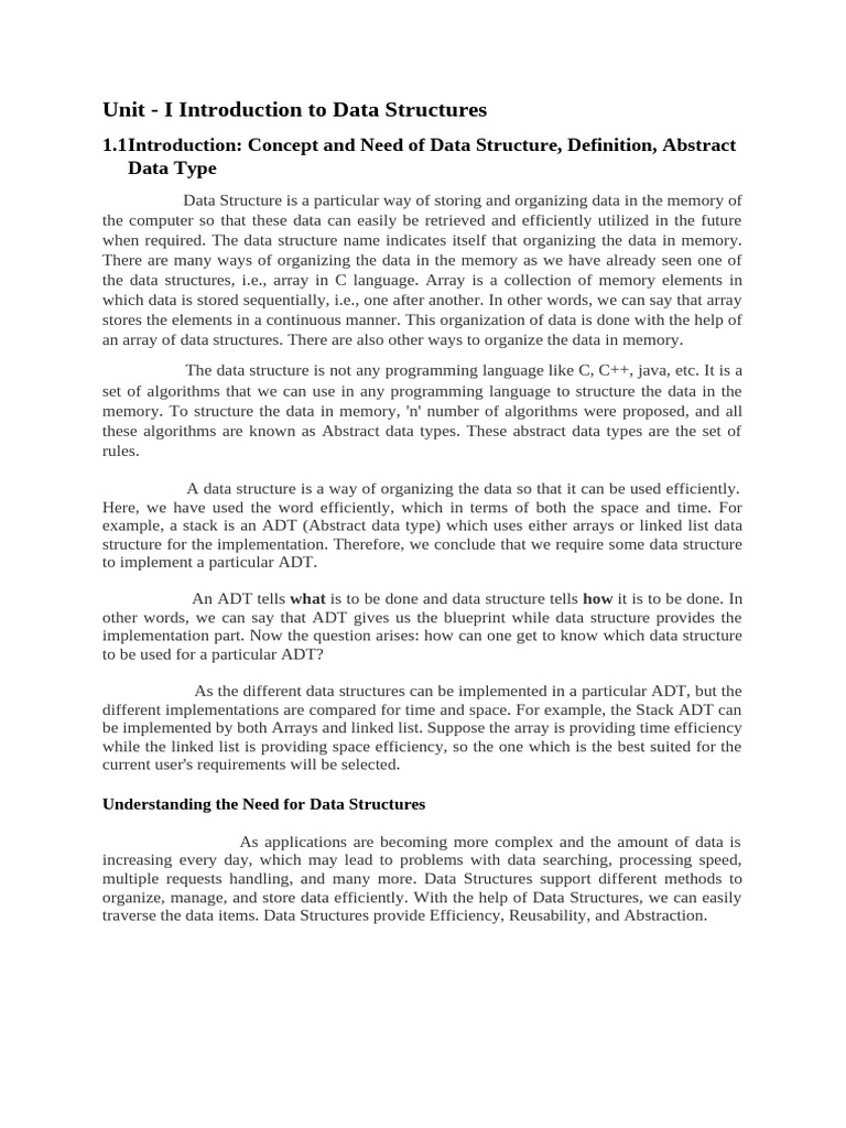 1.1Introduction: Concept and Need of Data Structure, Definition, Abstract