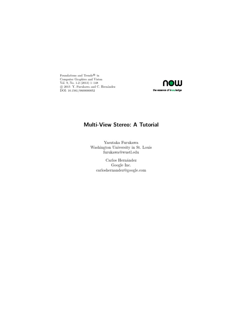 Y. Furukawa and C. Hernández . Multi-View Stereo: A Tutorial. Foundations and