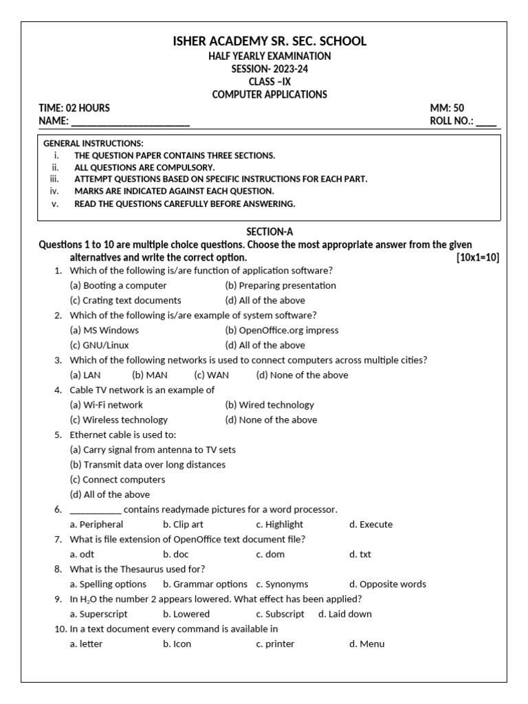 i. THE QUESTION PAPER CONTAINS THREE SECTIONS.