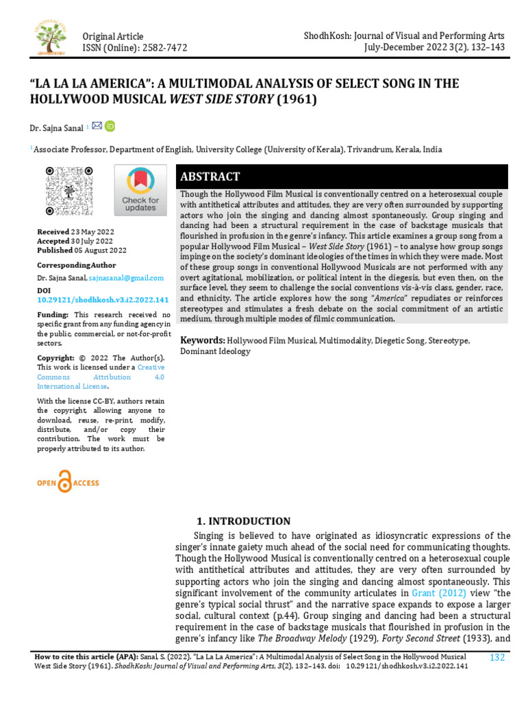 How to cite this article (APA): Sanal, S. (2022). “La La La America”: A Multimodal Analysis of Select Song in the Hollywood Musical 132