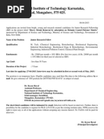 Advertisement for the Position of Junior Research Fellow (JRF)