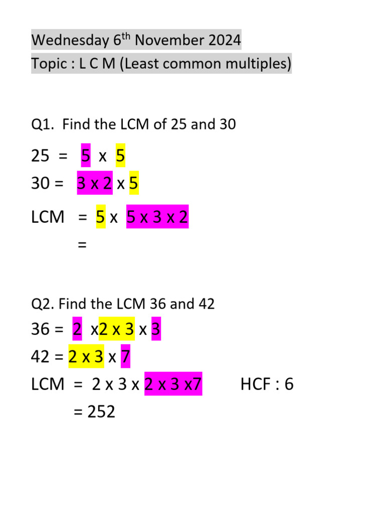 Topic : L C M (Least common multiples)