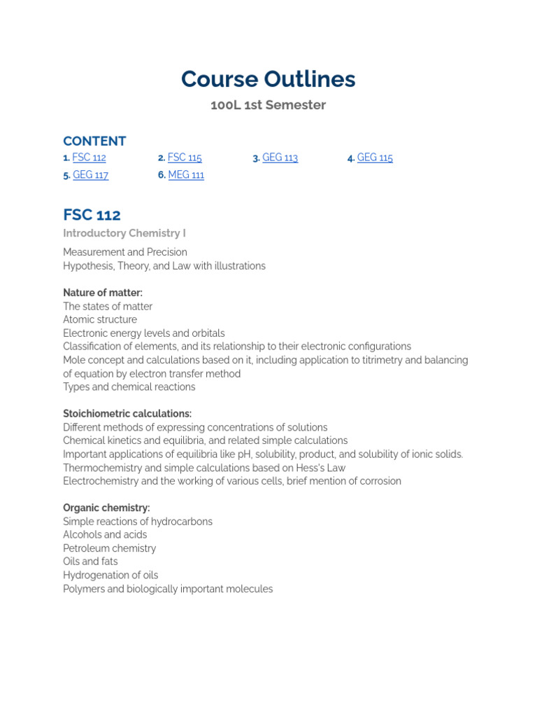 1. FSC 112 2. FSC 115 3. GEG 113 4. GEG 115