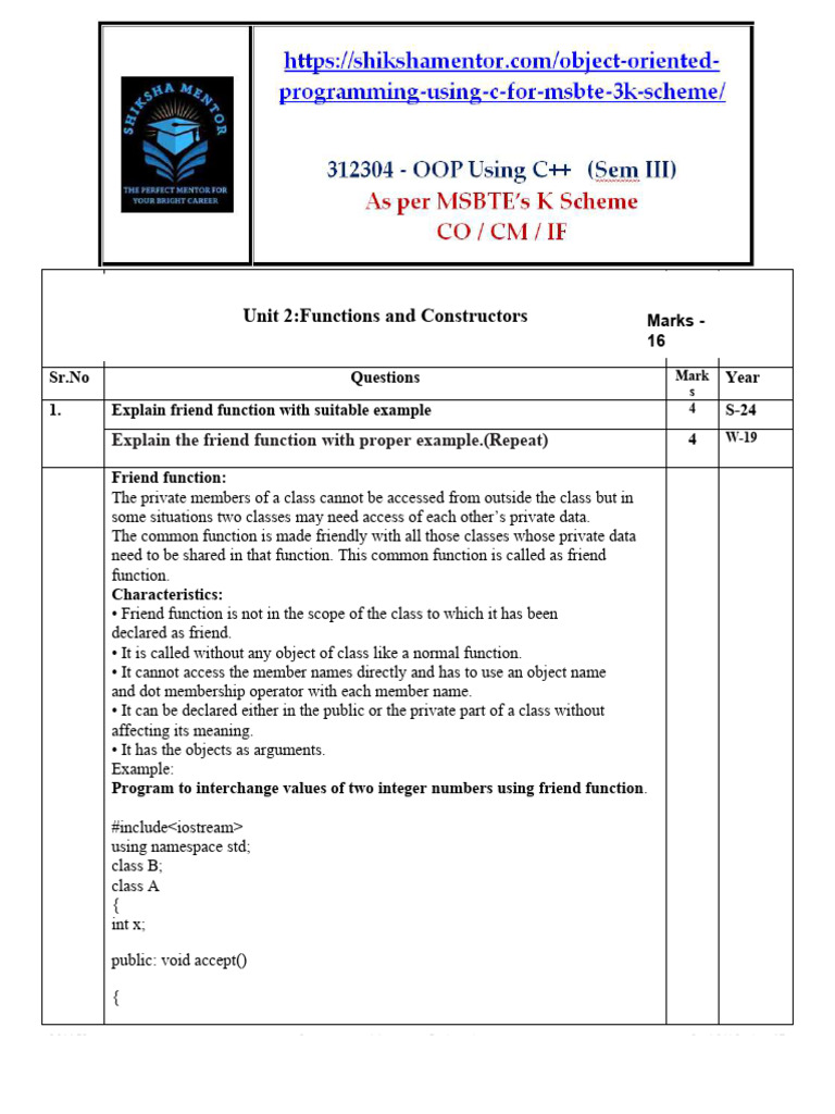 Subject – OOP Using C++ (313304) Question Bank – Unit -2