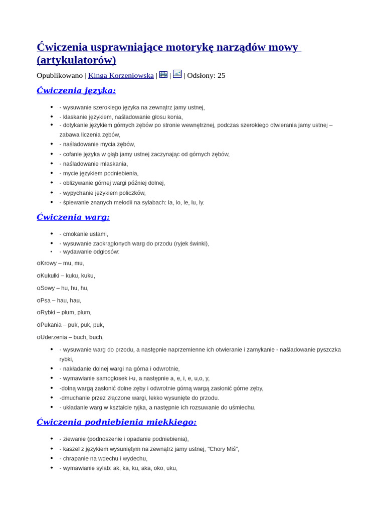 • - wysuwanie warg do przodu, a następnie naprzemienne ich otwieranie i zamykanie - naśladowanie pyszczka